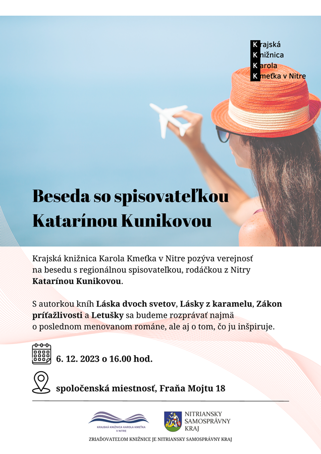 Začiatkom decembra k nám do krajskej knižnice príde opäť porozprávať o ďalšej svojej knihe. Príbeh o Linde z malého mesta, ktorej sa splní sen pracovať ako letuška, nám a vám – čitateľom príde autorka predstaviť v stredu 6. decembra 2023 o 16.00 hod.