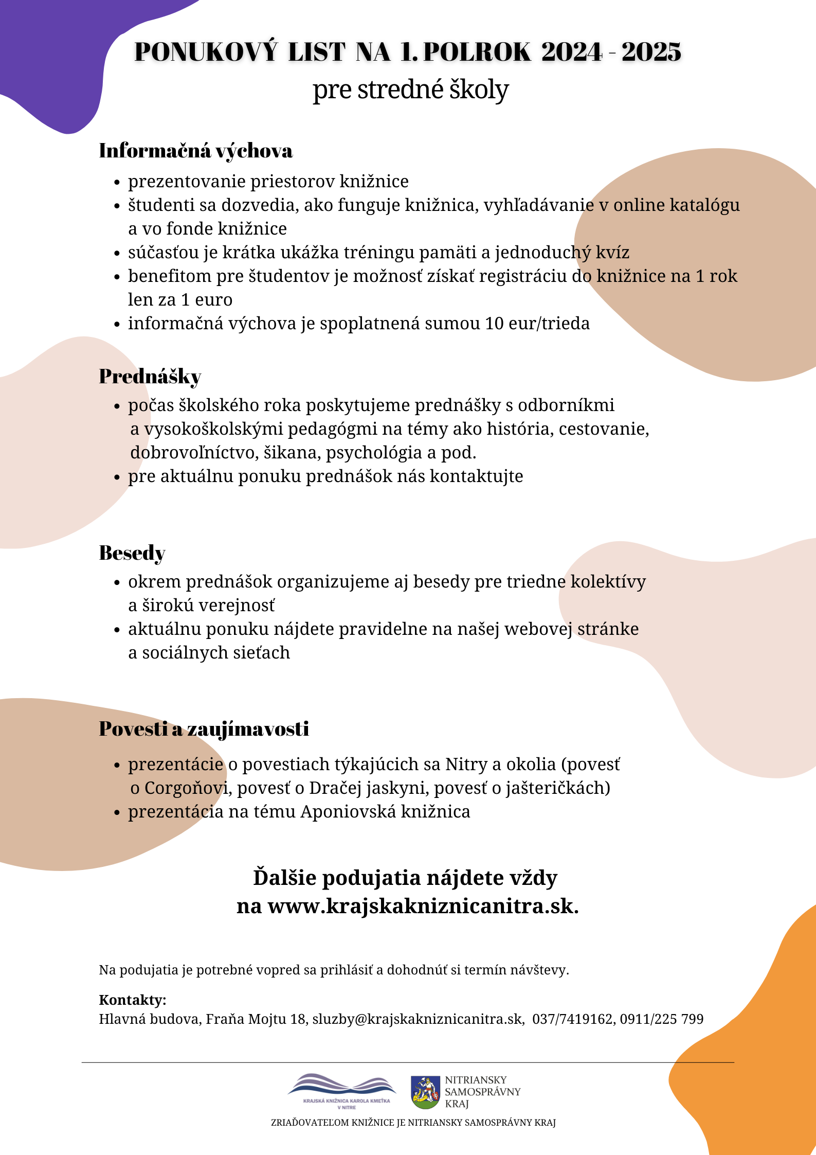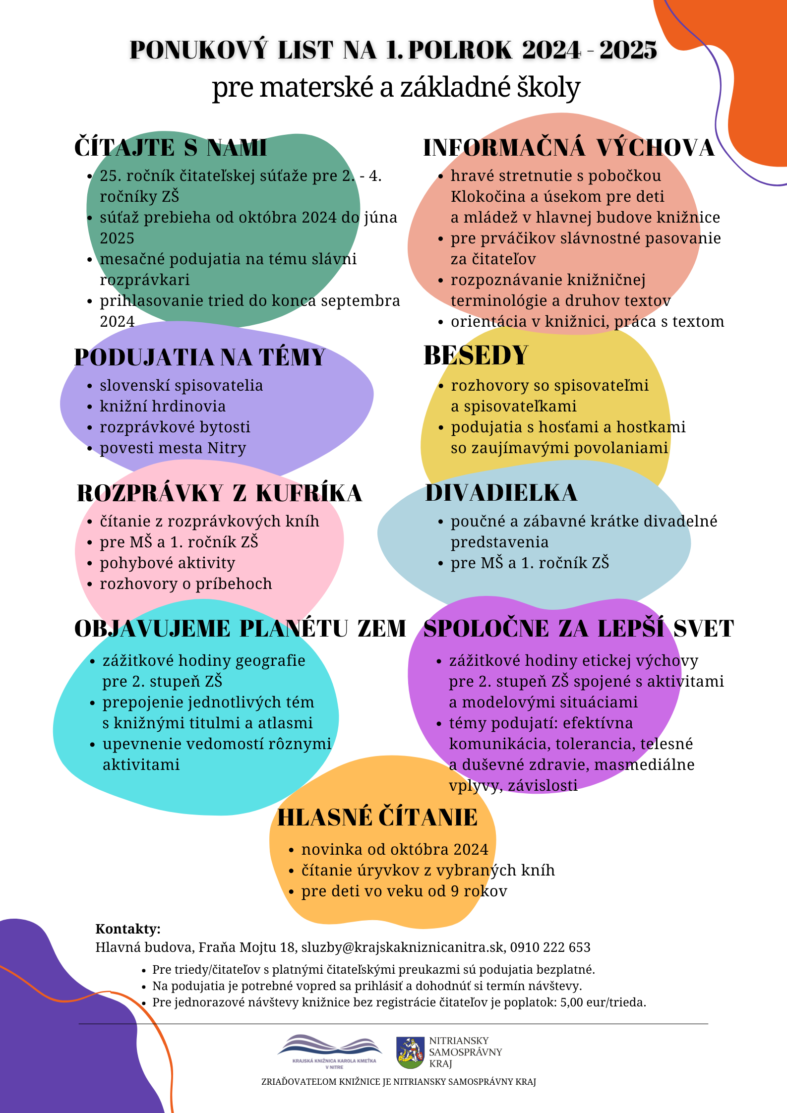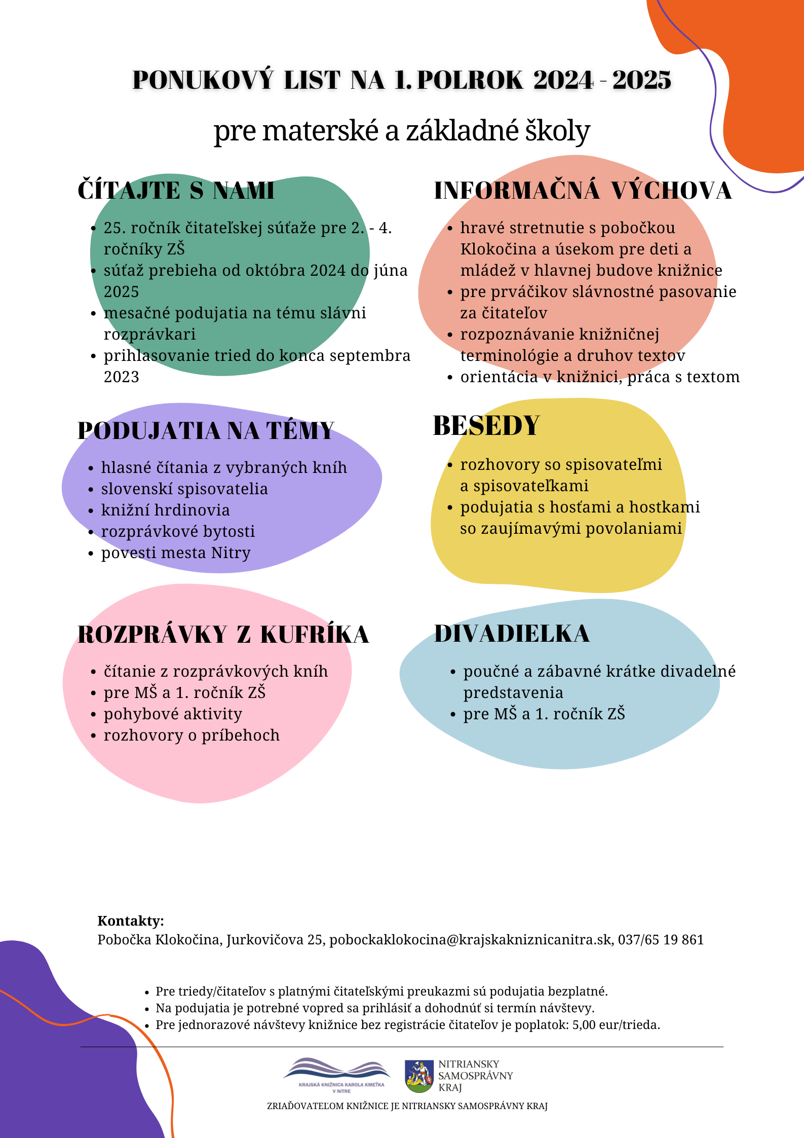 Pre školy Napísané dňa 14. august 2023. Ponukový list pre stredné školy na rok 2024/2025 Ponukový list pre materské a základné školy na rok 2024/025 - Fraňa Mojtu Ponukový list pre materské a základné školy na rok 2024/2025 - pobočka Klokočina